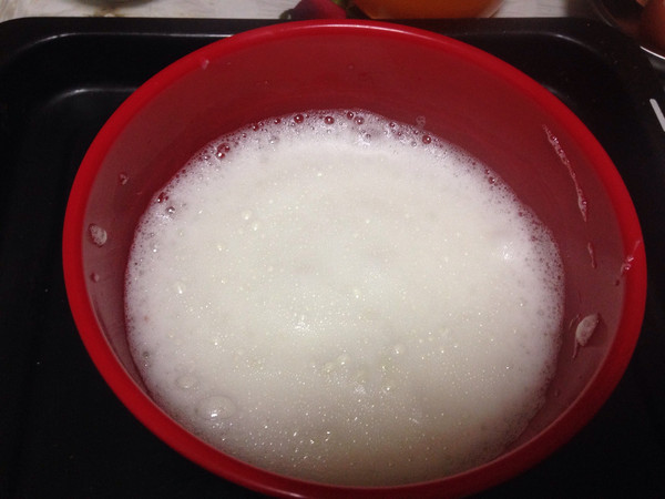 用干净无水无油的容器里放入蛋清在挤入几滴柠檬汁。