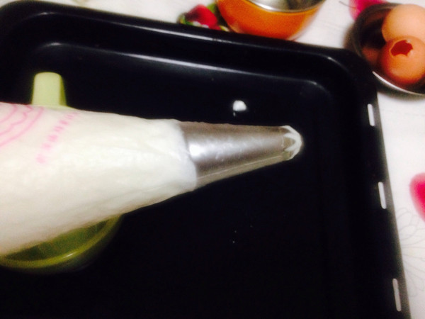 把裱花袋剪个口放入裱花嘴套在杯子上,将糊倒入裱花袋。