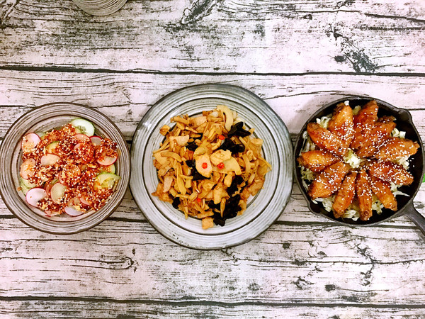 淋入青瓜和樱桃萝卜上,酸辣开胃