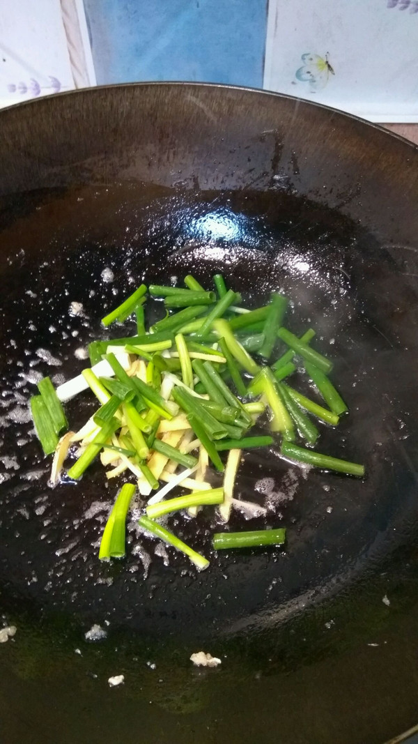 锅内留底油,爆香葱姜