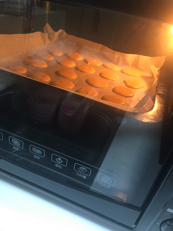 进烤箱预热,上下管180度,十至十五分钟,看个人喜好而定,我比较喜欢那种嫩黄稍微带点深色的