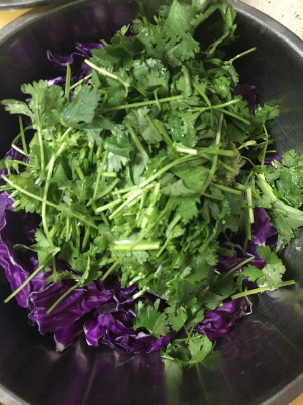 葱切段,放在一起,撒上盐,拌匀,腌一夜。