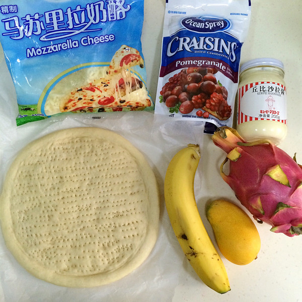 准备好需要的食材。(因为觉得水果放的挺多了,后面就选择不再加火龙果)