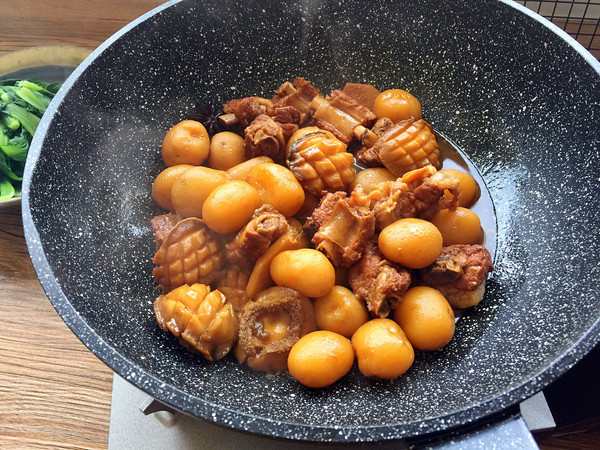 大约炖四十分钟后加入鲍鱼和小土豆继续炖30分钟,加适量盐调味