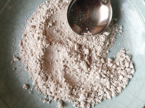 地瓜粉用勺子压碎备用
