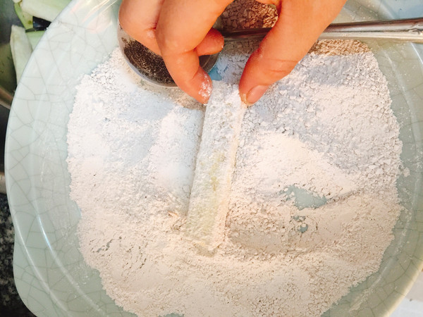 茄子在地瓜粉里滚一圈,均匀裹上地瓜粉