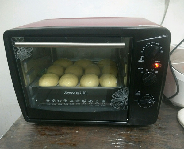 放入烤盘里,发酵两倍大,刷上一层蛋液。
