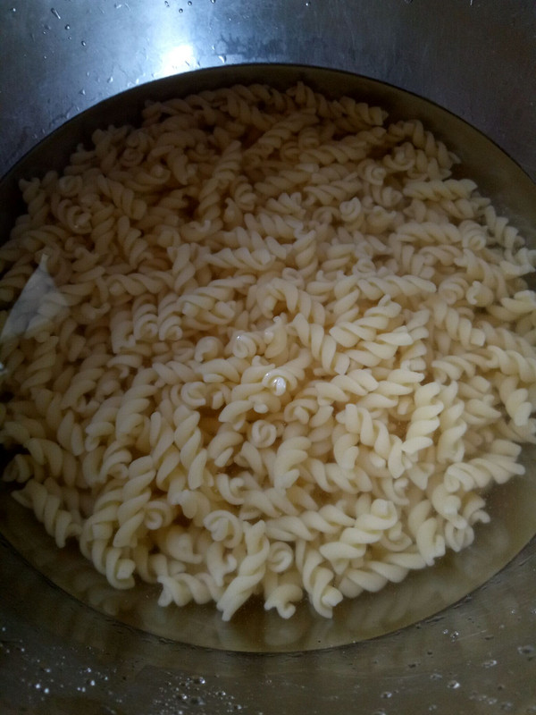 螺旋粉放入水中煮至沸腾,(水开后加入少量盐,可使螺旋粉吃起来有嚼劲。)大约七八分钟后可捞出,放入凉水中。