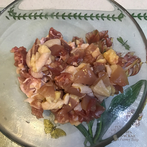 所用食材:整鸡腿,线椒,豆豉,大葱,大蒜,姜