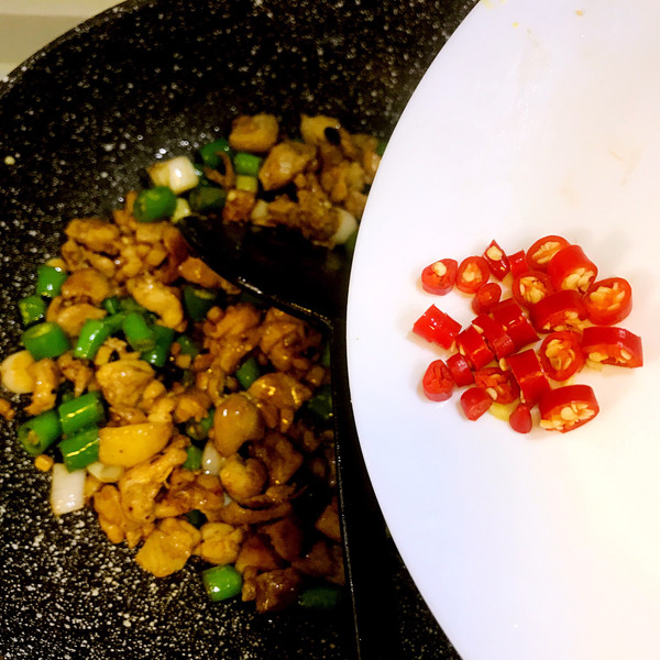 线椒切丁,蒜切丁,姜切丁,指天椒切段,送切段备用