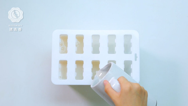 盖上模具盖子,插上雪糕棒,放入冰箱冷冻5小时