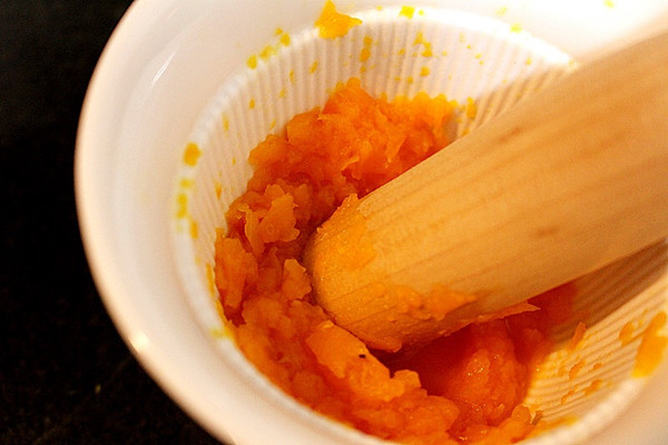 烤三文鱼的同时,可以做胡萝卜和西红柿,胡萝卜切薄片蒸20-25分钟,将其碾碎备用。