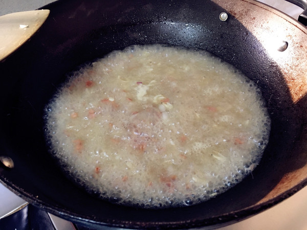 放入南瓜,少许食盐,搅拌,煮片刻,汤稍粘稠即可。
