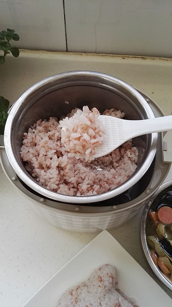红粳米可以直接蒸饭吃,当然更健康。水量根据家人喜好随意增减,喜欢硬点的就少放点儿水,喜欢软点的就多放一点水,随意哈。