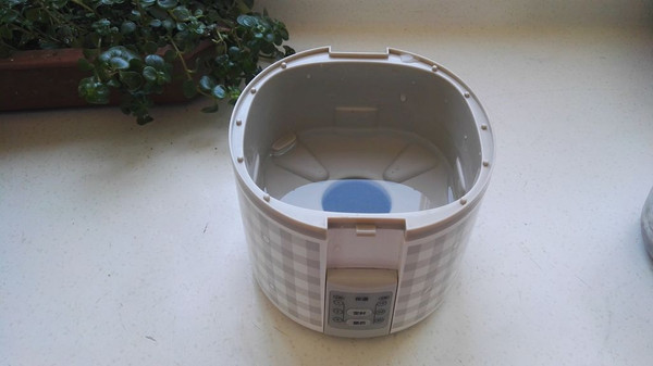 把米全部放进最大的不锈钢容器中,加入适量的清水,把不锈钢容器放入机体内。