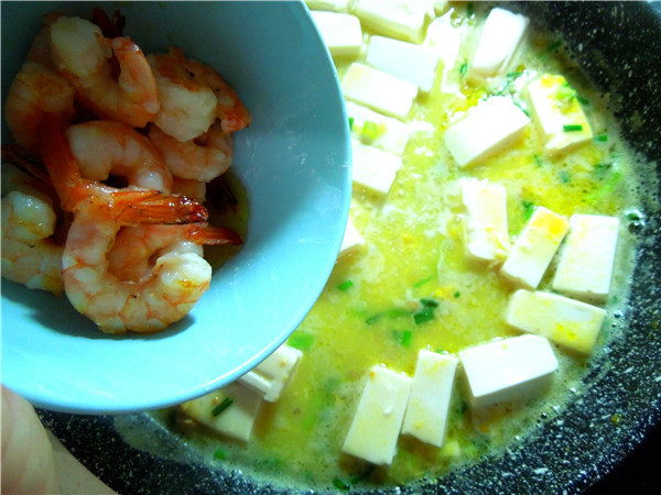 金汤虾仁豆腐羹:有内容有颜值的虾仁咸蛋黄豆腐羹(