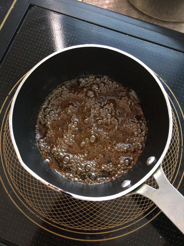 焦糖酱部分的糖和水烧至焦糖色后加入淡奶油