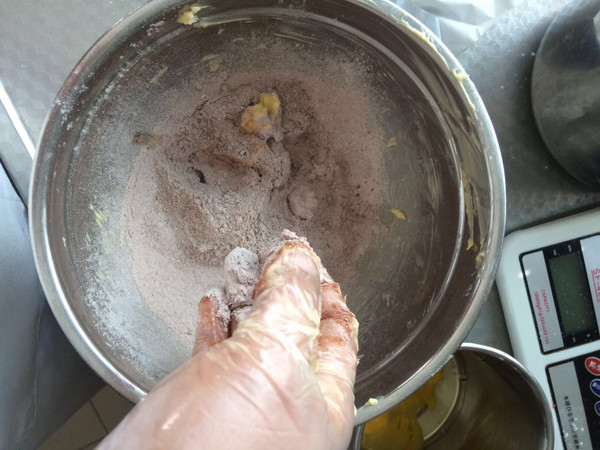 筛入低粉用刮刀快速搅拌均匀,看不到干粉