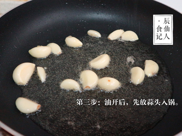 大蒜头可以帮助提香,一整颗蒜差不多15瓣足以。