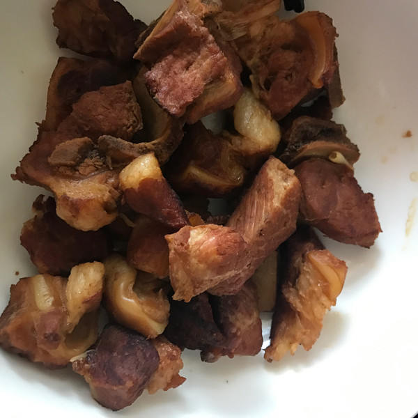待锅中汤水只剩下3分之一左右,捞出排骨备用。