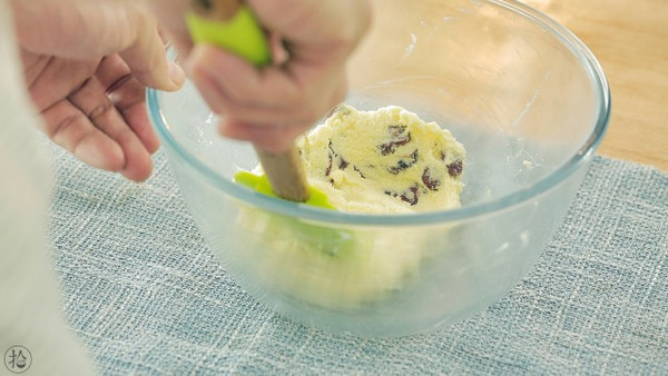 60g无盐黄油室温软化,其中20g用来做外皮,剩下的40g做内馅。 注意变软即可,不要融化成液体。