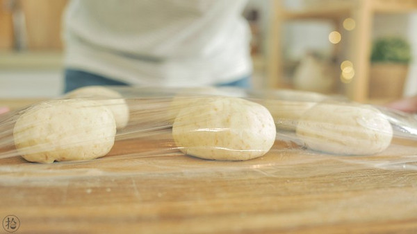 搓成圆球,覆上保鲜膜,室温下醒发15分钟。 注意这一步是为了松弛面团,让面团变得好操作就行了,不是发酵。
