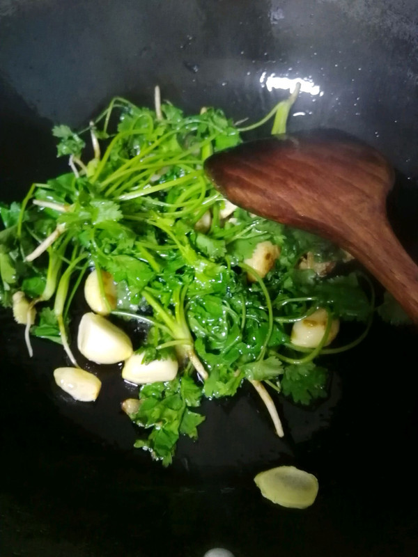 茄子洗净,沥干水分。大蒜去帝,姜切片,香菜洗净沥干水分。