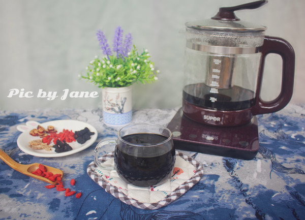 把材料洗净后装入苏泊尔养生壶的茶篮里,扭紧在盖子上