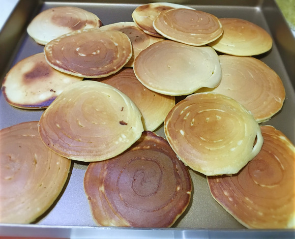 再往豆沙馅上盖上一片饼皮,铜锣烧就完成了!