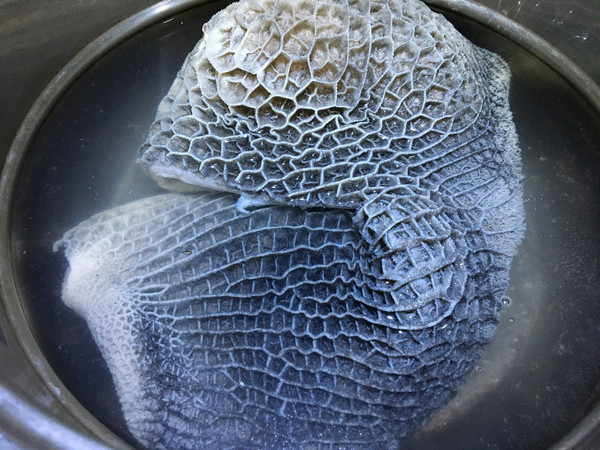 把金钱肚捞起来用刀子刮掉黑色的外层并冲洗干净。