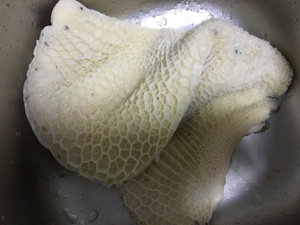 小半锅水烧开,放入金钱肚焯水两面各一分钟。