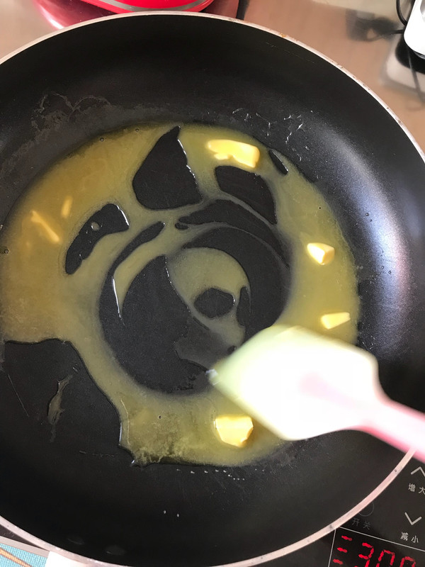 原材料说完了,开始吧,黄油放进不粘锅,一定要用不粘锅哈,别不听话,不然你会后悔的