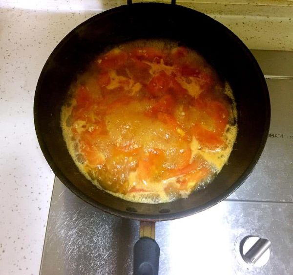 用开水烫番茄或放开水锅里煮1分钟去皮,将番茄切大块备用。