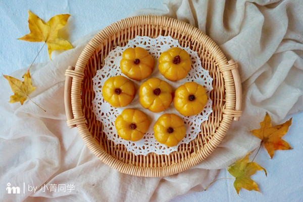 把烘焙纸裁成小方形,垫在南瓜饼下边,入蒸锅,蒸15分钟。