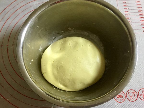 和成光滑的南瓜糯米团,我这次用的南瓜颜色浅,所以糯米团颜色也浅,但是蒸过之后颜色会加深。