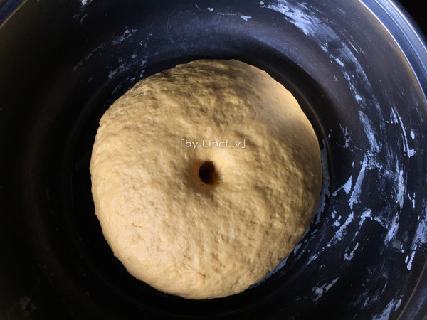 接着将发酵好之后的面团排尽空气,排了气的面团切开一个切面几乎无气孔哦