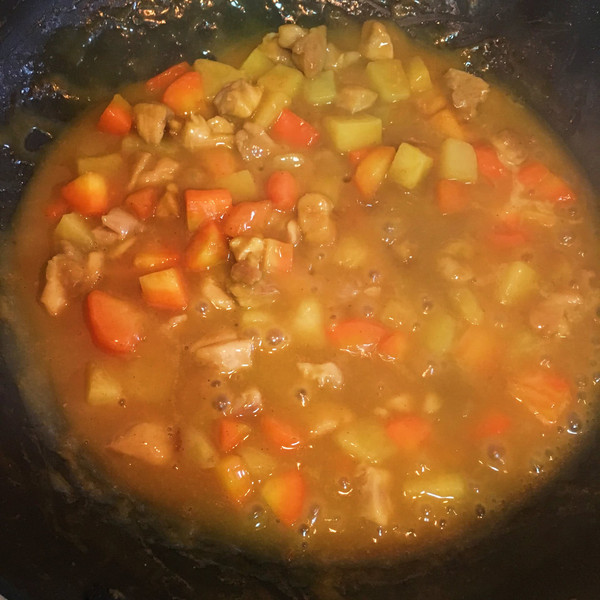 放入好侍百梦多咖喱。然后开中火将汤汁收浓。
