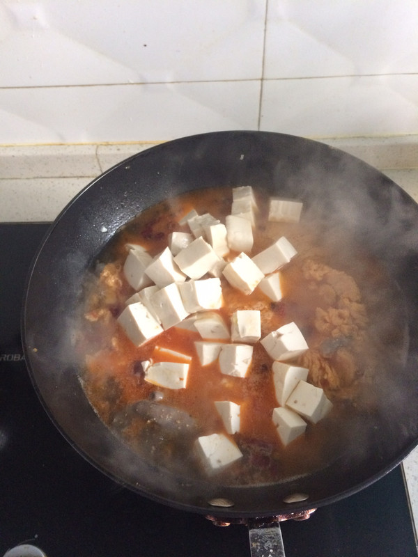 热锅给油,姜蒜豆瓣酱 辣椒 爆香(没有煎的可以这里直接放到里面炒一下,翻炒的可以慢点)