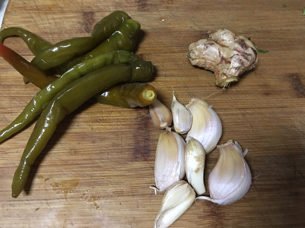 大块姜,蒜头,和自己做的泡辣椒,酸辣酸辣,让人停不下来哦,也可以用泡椒哦