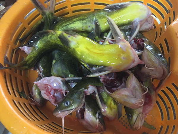 买鱼的时候就让店老板杀好了,黄鸭叫处理的时候要注意锋利的三根尖刺,洗净滤水,我这有8条,宴客做个鱼火锅,份量较大