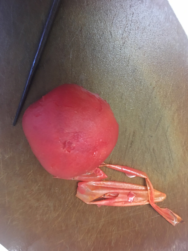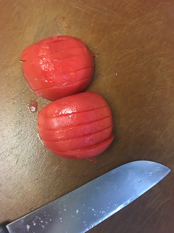 大功告成啦,没有皮的番茄已经切好装盘了。