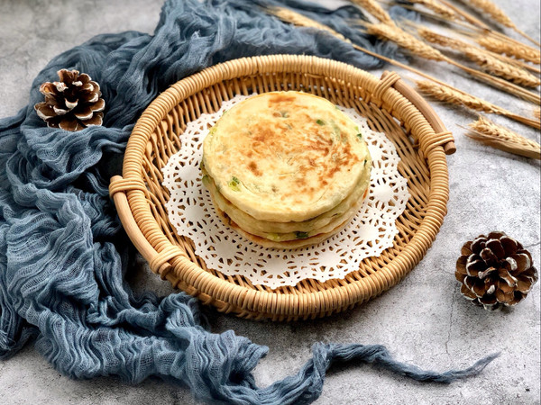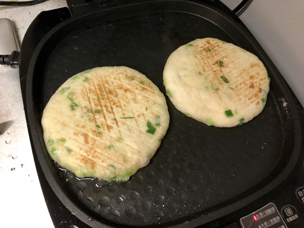 把面饼房进电饼铛,盖上盖子,用“大饼”模式开始烙制。