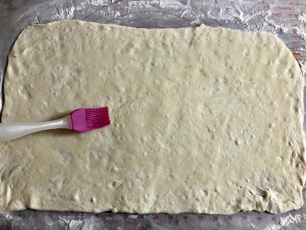 然后把面和成团,不需要揉的很光滑,揉至均匀没有干粉即可,粘手是正常的,因为含水量多。然后盖上保鲜膜进行基础发酵。