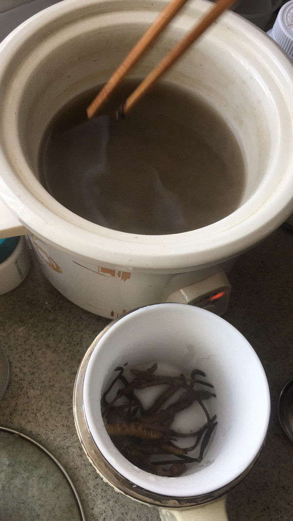 第二天早上再把冬虫夏草放入煲中,熬5-10分钟就可以了