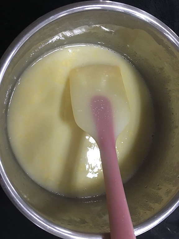 加入黄油和淡奶油,待黄油融化,液体变得略微浓稠即可;