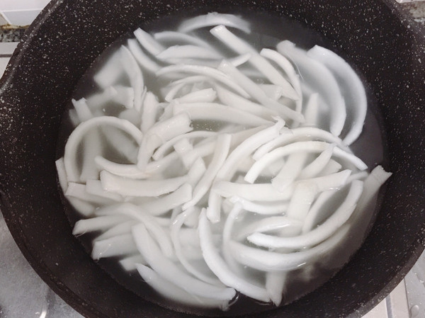 锅中倒入清水烧开后加入椰肉煮5分钟,让椰肉变软