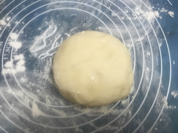 案板上撒一层薄薄的干粉,水油皮面团直接放到上面