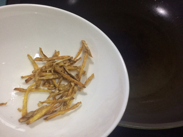 2、姜1小块,切成丝。