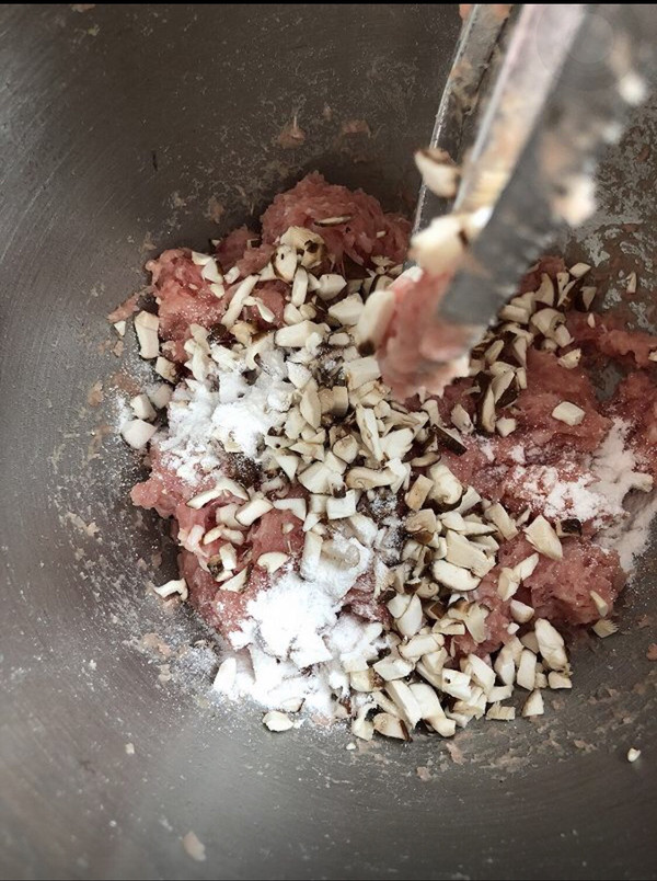 瘦肉绞成肉沫后放入厨师机搅拌桶内