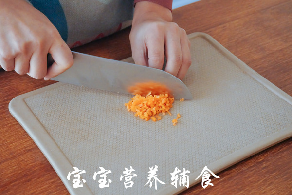 准备食材:芹菜10克、奶酪15克、丁香鱼2克、胡萝卜10克、鸡蛋1个。